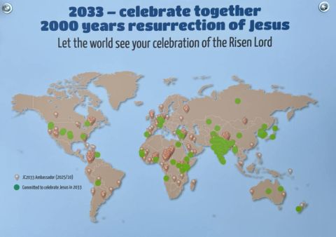 The joint booth between Solide Deo Gloria 2033 and JC2033 attracted many representatives from four continents. Each participant was able to place a green sticker on their country, symbolizing their commitment to celebrate 2000 years of the resurrection and to take concrete action for 2033.